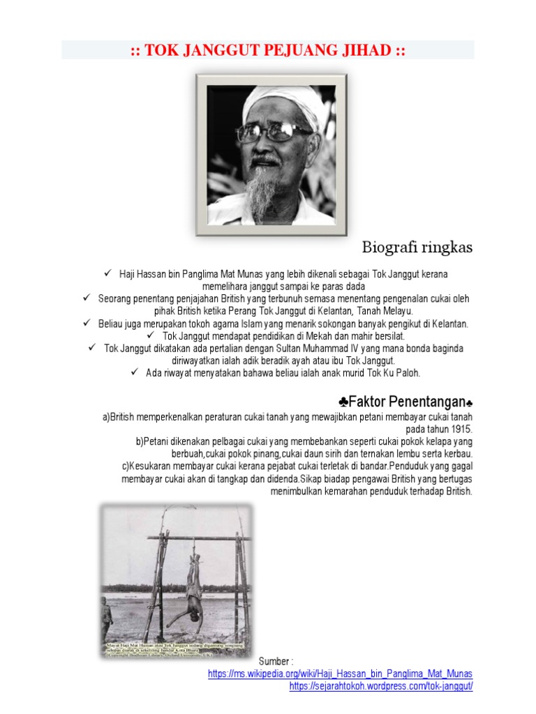 Tok Janggut Menentang Kerana Cukai Yang Tinggi Dikenakan Kepada Rakyat Mari Belajar Sejarah Sskm Ssu Uk