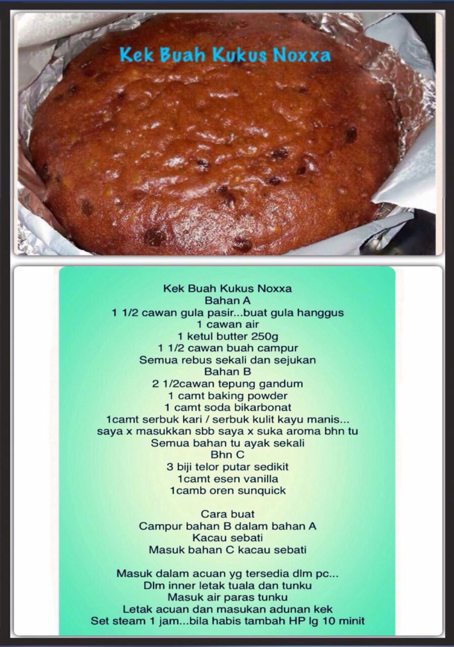 Kumpulan Resipi Sedap Dan Menyelerakan Kek Buah Kukus Noxxa