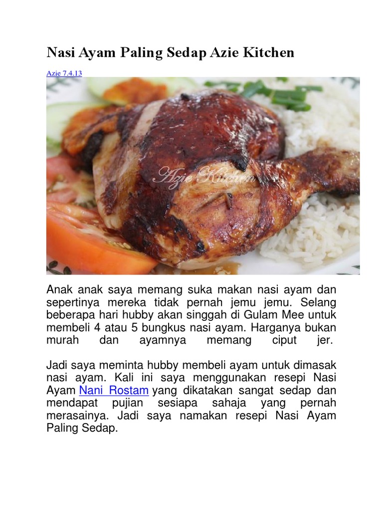 Nasi Ayam Paling Sedap Azie Kitchen Azie Kitchen