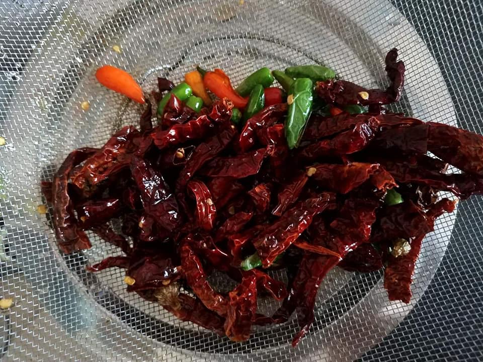 Goreng cili kering goreng bawang merah goreng bawang putih goreng ikan bilis goreng bahan2 secara berasingan tumbuk cili kering. Kalau guna pak aji bolehlah letak sikit pada sambal. Sama macam goreng keropok. Jadi buat permulaan ni che nor nak cerita mengenai asal usul pembuatan sambal garing che nor.