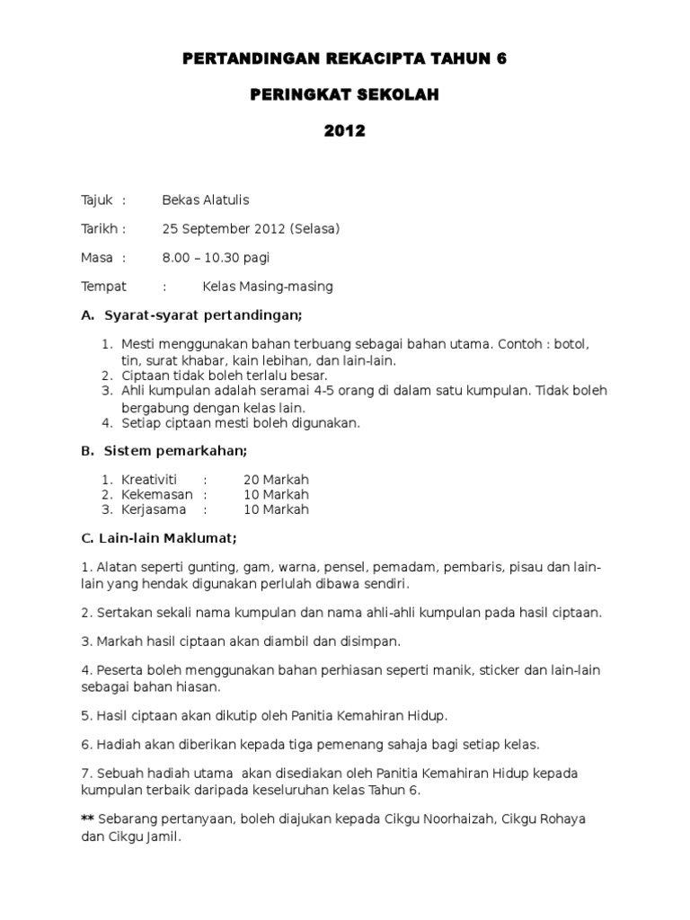 Syarat Pertandingan Reka Cipta Bahan Terbuang